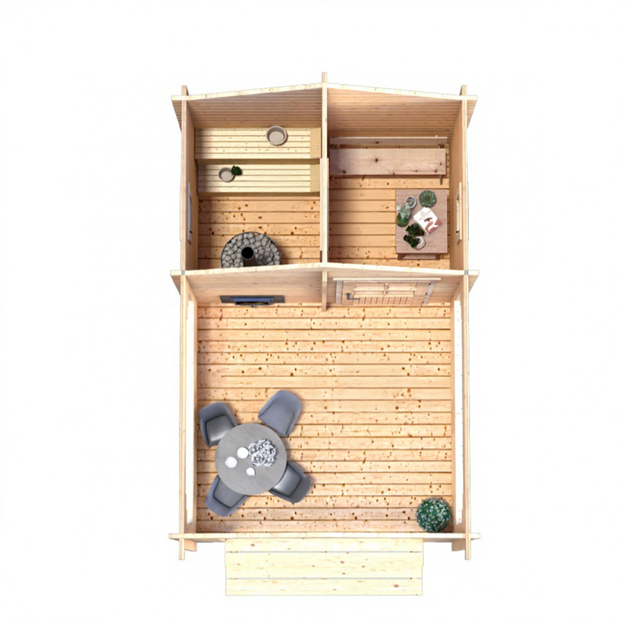 - Потолок: имитация бруса 20×135 мм., камерной сушки;