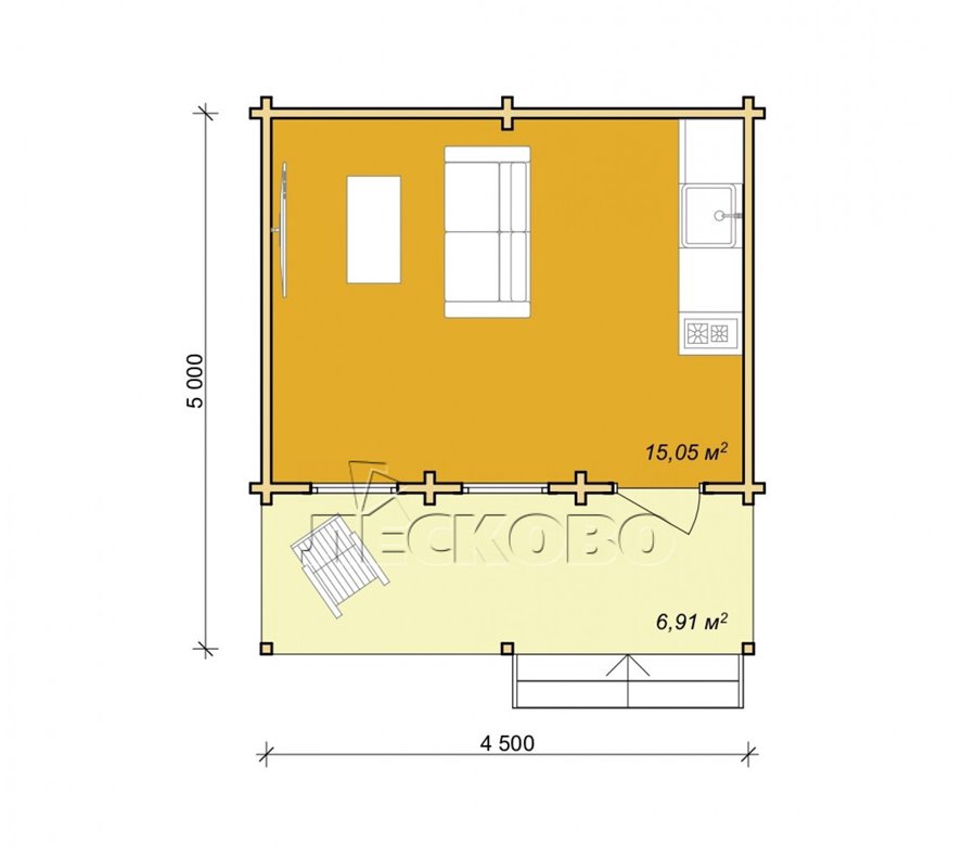 - Стеновой комплект: мини-брус камерной сушки 65мм×145 мм. с чашами под проект. Материал дерева — ель, сосна (ГОСТ 8486). Влажность 12-16%. Высота стен 2,16 м.;